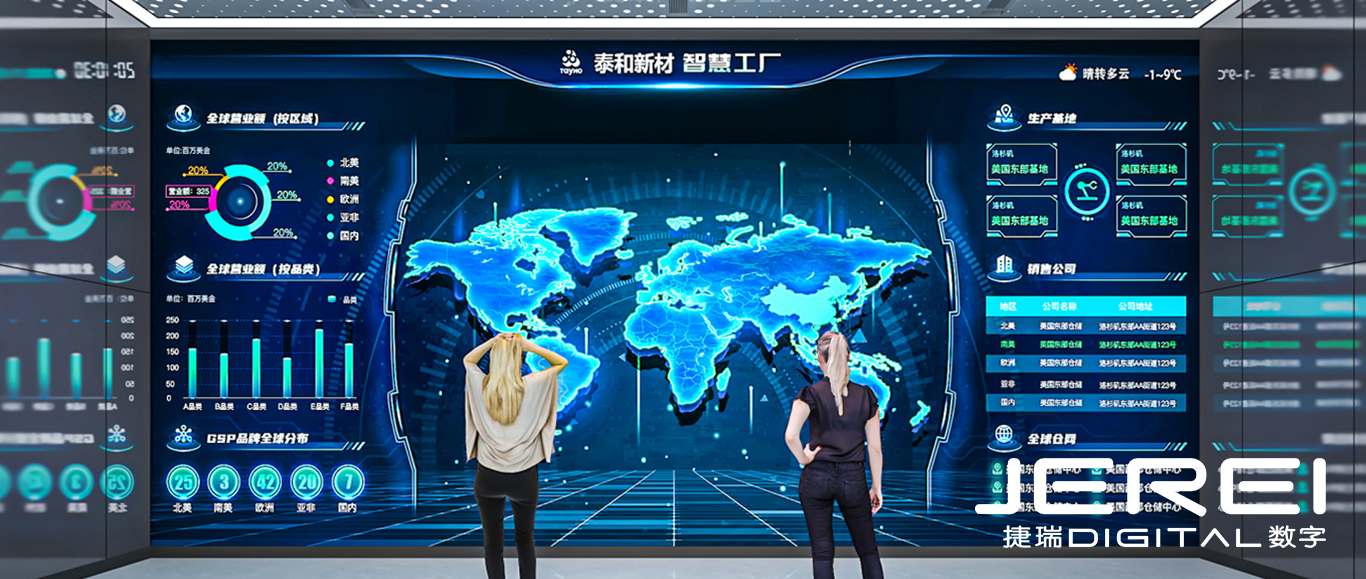 泰和新材数字展馆管理驾驶舱充分利用数字技术借助J3D数字孪生引擎与RBI商业智能设计器的强大功能,,,,将企业内部各类关键业务数据进行整合,,,并通过伏锂码云平台进行高效处理,,,为企业提供了全面、、、、精准的业务信息可视化展示,,,,助力企业实现高效决策和智能化管理。。。